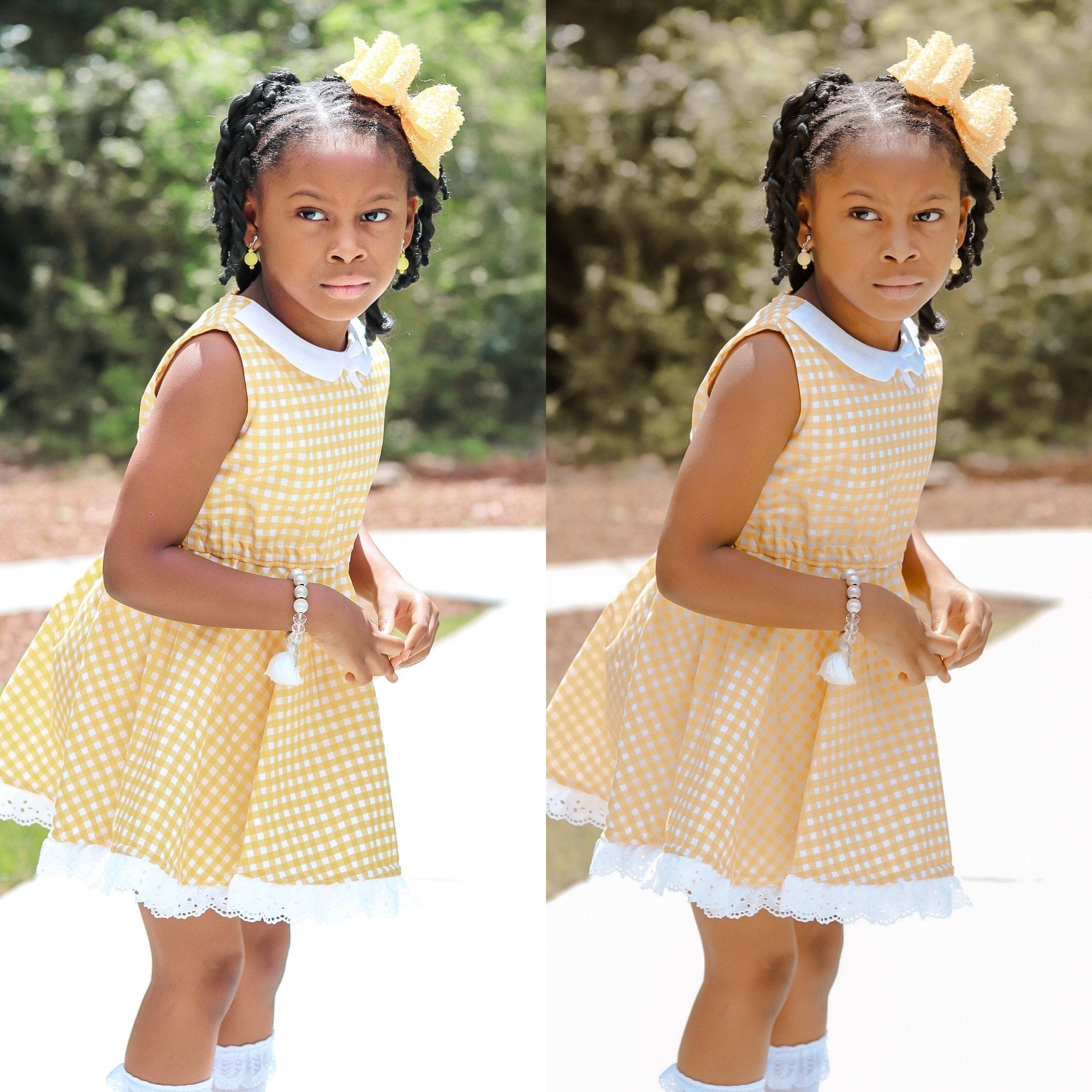 Next, you’re going to open Lightroom mobile! Hit “add photo”. You’re going to see a photo that is loaded with the preset. Upload! Once you do that, you’ll see a photo of a little girl with in a rust dress! That’s your preset!